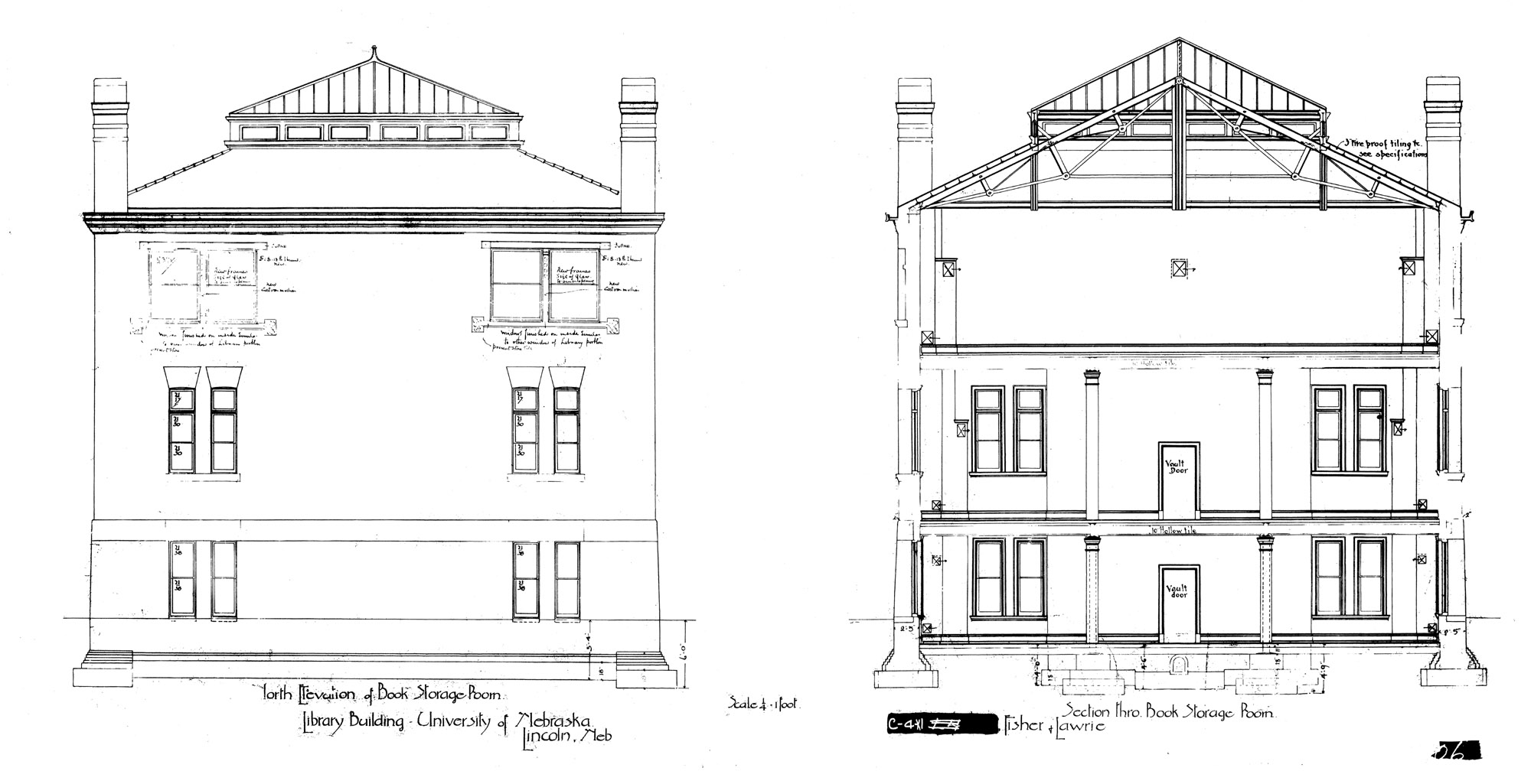 Description: North Elevation and Building Section Year: 1892 Source: UNL Facilities Management View Plan Image